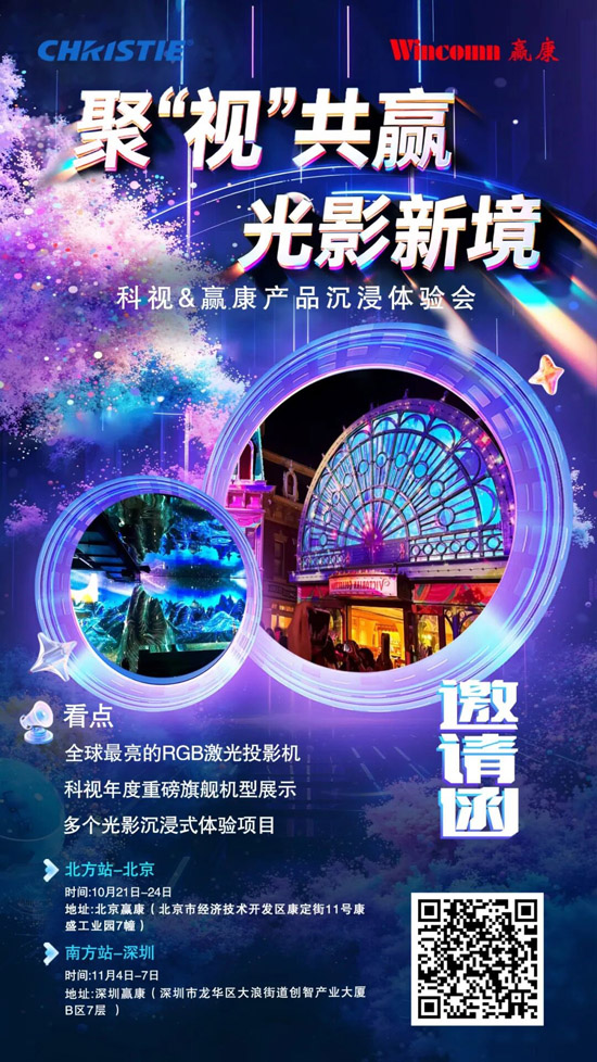 科视与赢康再度联袂,携手共书崭新篇章。在此,我们诚挚邀请各位伙伴亲临现场,沉浸式领略科视全新产品的独特魅力,感受赢康创意展项的精妙构思。相信前沿技术与非凡创意激情碰撞,一定会给您带来一场难以忘怀的体验之旅。