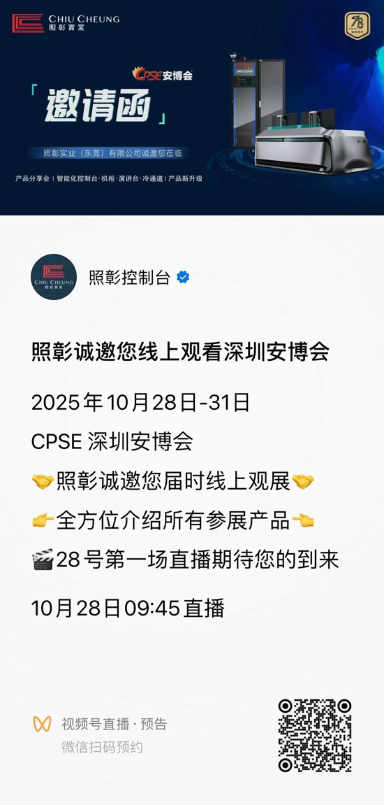 2025 第二十届中国国际社会公共安全博览会将于2025102831日在深圳会展中心(福田)盛大举办。届时,照彰将全面展示应用于AI时代,各垂直行业、多元化场景的控制台、演讲台/讲台、冷通道、一体化机柜等产品及集成解决方案,与您共探盛宴!