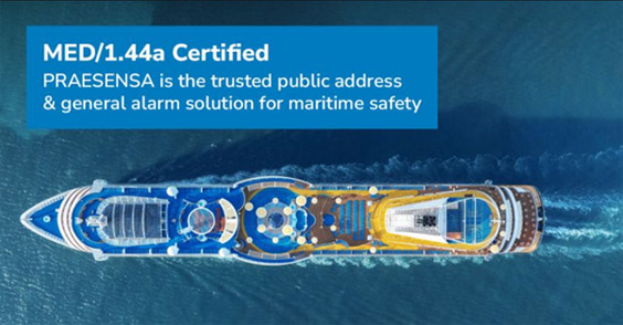 值得一提的是,博世 PRAESENSA 系统符合 MED 1.44a 海事认证要求。该认证是针对船舶 PAGA 公共广播与报警系统的重要欧盟指令,广泛应用于邮轮、商船等海事场景,对系统在可靠性、可用性和紧急状态下的性能表现提出了严格规范。通过 MED 1.44a 认证,意味着 PRAESENSA 系统能够满足海上航行环境中对紧急语音清晰传达、系统冗余设计及持续运行能力的高标准要求,为极地等复杂航行条件下的安全通信提供了坚实保障。
