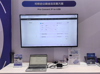 现场以腾讯会议Rooms会议室解决方案中的视频会议网络流采集方案模式展示Pro Convert IP to USB这款IP转换产品。腾讯会议Rooms会议室解决方案,Rooms会议室系统是腾讯会议专为线下会议空间打造的新一代云视频会议室解决方案,适用于企业新建及改造会议空间场景。方案融合了高请音视频会议、无线投屏、协作白板、集中式管理后台等软件能力,并开放音视频认证标准,臻选行业领先硬件产品,通过软硬件结合解决方案,全方位提升会议室协作体验。