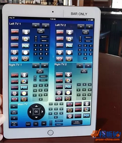 对于高尔夫俱乐部会员来说,绿茵场外才是休憩佳所。位于康涅狄格州格林尼治的高尔夫俱乐部Founders Room为会员提供休闲贵宾室酒吧,方便会员在此放松,点一杯冷饮,惬意闲谈,并通过安装在房间周围的4台49英寸索尼XBR液晶电视以及安装在酒吧中央的85英寸索尼XBR液晶电视来了解最新体育赛事资讯。这里全靠调酒师根据会员需求来点播电视频道。当时的控制系统耗时良久,操作不便,为此俱乐部希望安装一种简单的可视化界面来替代。调酒师需要一种能方便开关并控制每台显示屏的解决方案,而非使用一堆遥控器或复杂操作界面,以便专心为俱乐部成员服务。康涅狄格电子集团所有人David Lawrence接受了此项任务,他需要寻求一种可解决、开发并集成的定制操控解决方案,使用自然的同时并增加操控器的提升空间使用户具有高端体验。
