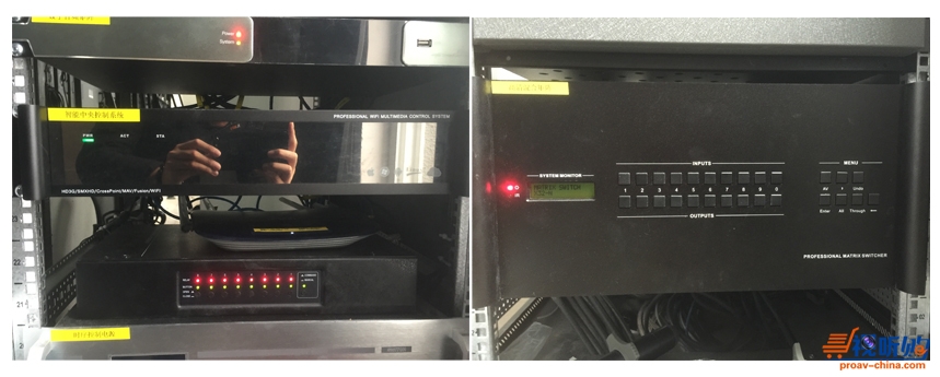 根据现场实际需求,由于信号源众多,配置了32路进32路出混合插卡矩阵,同时混合插卡矩阵与3×6拼接大屏无缝兼容。中央控制系统对调度控制中心设备的音视频信号、电源、声音等进行集中控制,达到“一体化”的控制需求。