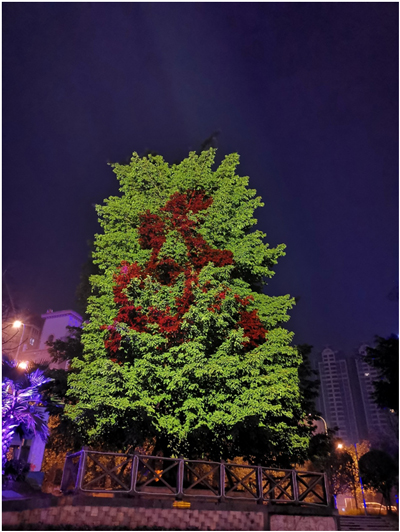 “今年元夜时,花市灯如昼。” 特别是成都金堂的毗河湾旅游度假区现“树上投影”奇景,在今年春节爆红网络,吸引了不少市民慕名前来打卡。位于金外滩梯步广场两侧的参天大树,树影摇曳,用2台NEC 英雄双色激光工程投影机演绎出的翩翩舞姿“仙”气十足,灵动光影与远处的摩天轮遥相呼应,在这座充满活力的都市营造了动感又个性的欢乐节日氛围。