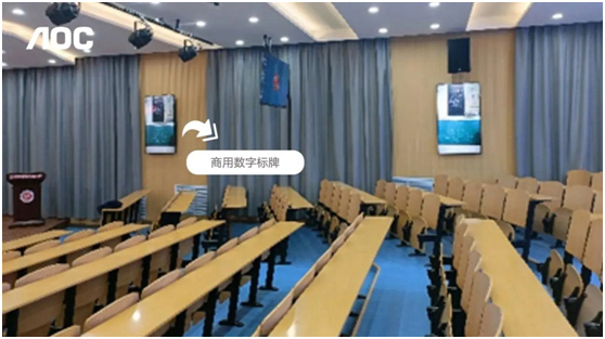 教育信息化时代,录播教室已得到广泛应用。其不仅可以为录制教师教学活动提供更专业的数字化平台,更可以满足智慧教育中视频公开课、远程教学、精品课程总结等应用需求。于运城师范高等专科学校内,AOC翼彩系列数字标牌即应用于智慧录播教室,用以实现教育信息的智慧化展示。