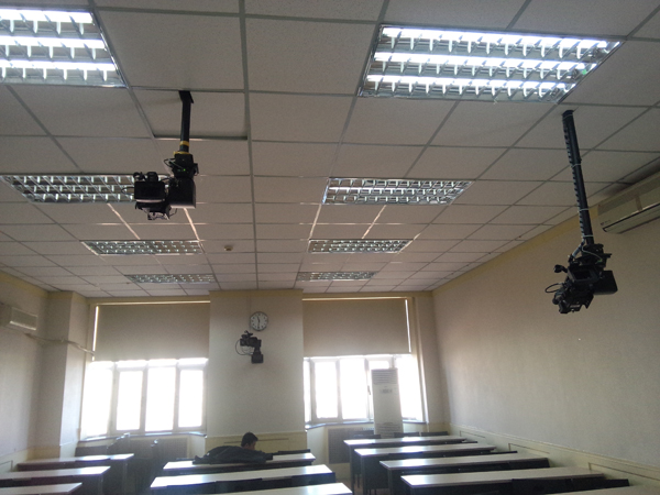 系统中采用3套KXWELL广播级遥控云台,结合原先一台其他品牌云台,通过KXWELL广播级控制器KX-RP8605U的集中控制,组成4机位的广播级遥控录课系统。