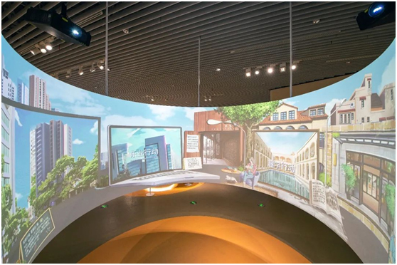 顺展线前行,又到了一处弧形大幕,上海市民的15分钟社区生活在这里上演。公园绿地、城市书房、体育场馆,松下PT-FRZ120C工程投影机的高色准双驱动固态激光光源和强光补正功能,细腻精准还原真实场景,搭配弧形大幕带来的强烈临场感,在高楼大厦和弄堂小巷之间穿梭,不觉被上海生活的幸福感所感染。