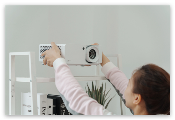 在外观设计上,Optoma UHZ616也颇具匠心。它采用了紧凑的机身设计,比上一代体积减小了34%,不仅方便携带和安装,还优化了包装尺寸,实现了高效物流和低碳排放。此外,它还支持360°安装和灵活的梯形校正功能,能够适应各种复杂的安装环境,让安装调试更加方便快捷。