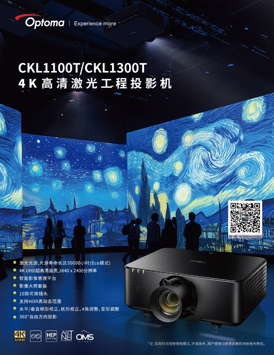 Optoma 奥图码正式推出CKL1100T/CKL1300T 激光投影机,专为高端商业、文旅娱乐与专业视听场景打造。