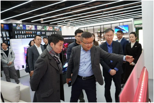 考察团一行首先参观了冠捷科技全屏展示大厅。展厅通过生动的图片、视频、应用场景等形式,全面展示了冠捷科技旗下的智慧商显、显示器、电视、音视频等全品类视讯生态体系与其应用场景,让考察团一行领导切实感受到冠捷科技与飞利浦商显深耕行业多年的深厚底蕴和科技实力。