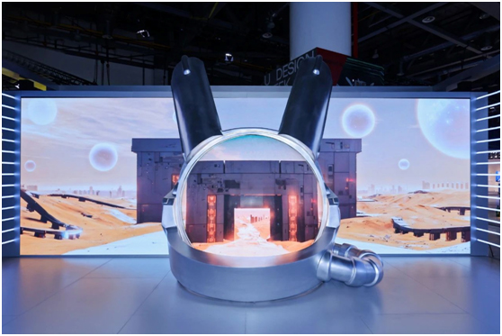 飞晶小间距LED屏除了以出色的画质表现助力外,能通过Zero Bezel LED“零边框”无缝设计,实现画面轻松拓展、完整呈现,广视角观看。另外,根据空间需求和审美创意,按照潮流艺术IP-ROBBi进行屏幕造型的艺术创意开发,展现多姿曲面,为用户创造奇妙视觉,呈现丰富多彩的视觉效果。