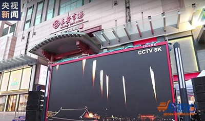 央视再次选用AET 0.7 8K MTM-FCOB显示屏直播展示各大商圈热闹景象,尽显消费市场生机。