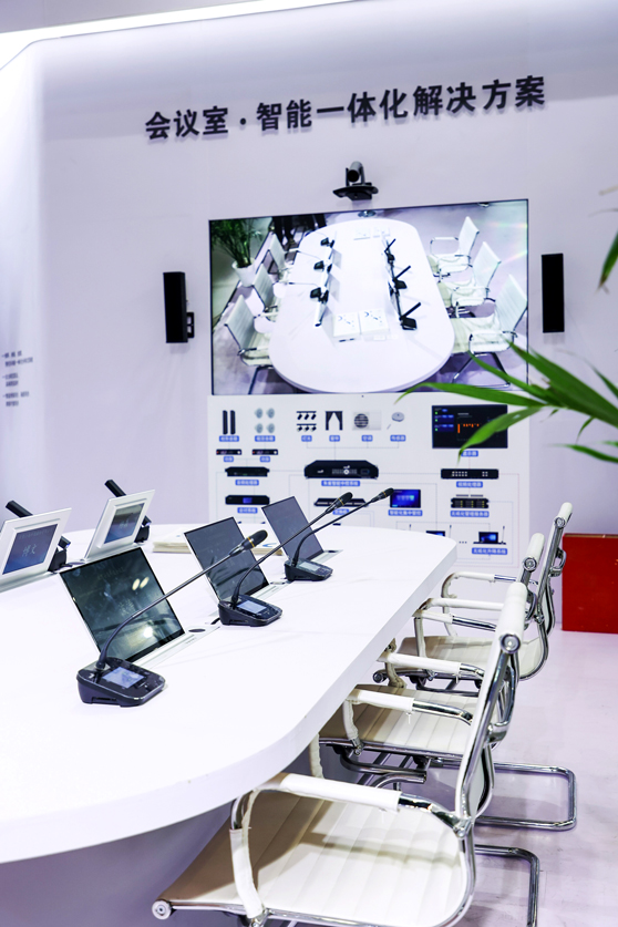 小鸟科技现场展台所呈现的智能会议室一体化解决方案,囊括了数字会讨、音频处理、智能扩声和无纸化系统,各系统之间可相互协作,共同配合。其中,无损分布式会议室标准化解决方案作为本次参展的明星新品得到现场高度关注。