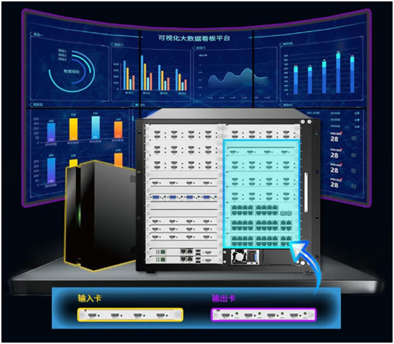 采用混插槽位创新设计,同槽位可灵活配置为输入卡或输出卡。在机箱规模不变的情况下,实现按需配置,灵活应用。