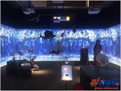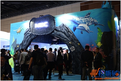 此次IFC展会期间,NEC与鸿合科技别出心裁的将整个展厅做成了“海底世界”,吸引众多现场观众驻足观看。由6台NEC最新PA系列液晶工程投影机通过融合技术,创造出超大无缝的沉寖式三折幕逼真画面,让视野更宽,更具冲击力和真实感,并配合贝壳、细沙等实物元素,使观众在高质量的视听环境包围之中,产生身临其境的感觉,如同置身于炫彩缤纷的海底世界。