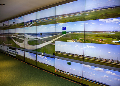 作为Searidge服务的一部分,多台博世星光级摄像机拍摄的视频流会拼接在一起,运行复杂的处理算法后,提供机场地面的停机坪、大门、滑道和跑道区域的无缝全景画面。视频实时向用户显示,例如:空中交通管制员、机场运营商、安保人员等,并可存档以供将来回放和审查。