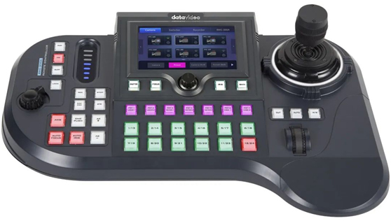 还在为如何以一人之力应对正常中大型会议直播录播而苦恼吗?是不是被繁杂的会议拍摄录播多重设备操作搞晕菜了?想要包办一场效果专业的中大型规模会议拍摄录播,就马上联想到请专业摄制团队,却又纠结录制成本的问题?有了它,从此不必害怕单打独斗!以您一己之力就能挑起视频会议录播工作的大梁,高画质而且省心省力省成本。而且,它还是会议视听分布式控制系统的重要辅助工具之一,帮助企业实现会议室多控功能,并能够融入智慧型企业完整的视听系统!它就是Datavideo洋铭研发的一款口碑极高的多功能远程控制器RMC-300A。