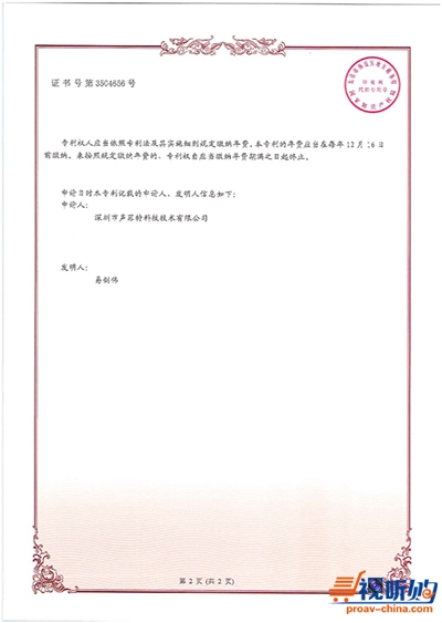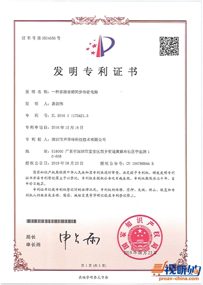 近日,声菲特自主开发的“一种多路音频同步传输电路”技术获得国家知识产权局颁布的发明专利证书(证书编号:ZL 2016 1 1175421.3)。