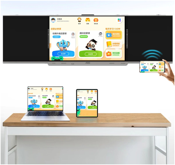 除此之外,AOC更具备智慧班牌、智慧讲台、视频展台等教学硬件设备,以及可以满足教师们课前备课、课中授课、课后班务管理等应用所需的智慧白板教学软件。