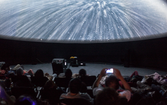 中国科技馆球幕影院,在这间影院内,观众只要坐在软椅上,抬头环顾四周的影像,就会出现遨游太空,穿越山脉等逼真的幻觉,体验躺着看电影的乐趣。