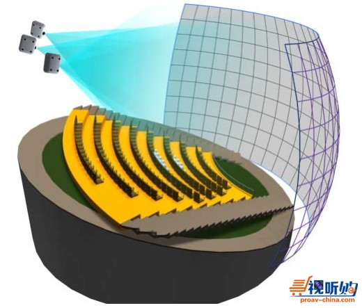 球幕的显示依靠数字投影机来投射对应的画面内容到屏幕表面完成。通常来说有单鱼眼镜头投影方式和多投影拼接显示方式。