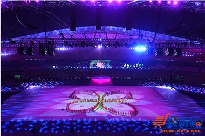 震撼的3D效果轰动全场,灿烂灯光烘托出唯美的影像。舞台中央的巨幕3D投影成为整场的焦点,鲜明的色彩、如诗如画的光影变换结合演员们精心排练的舞美造型共同演绎出一场气势如虹的精彩演出!
