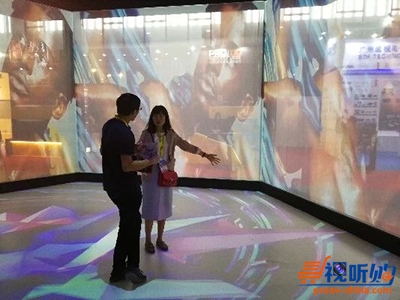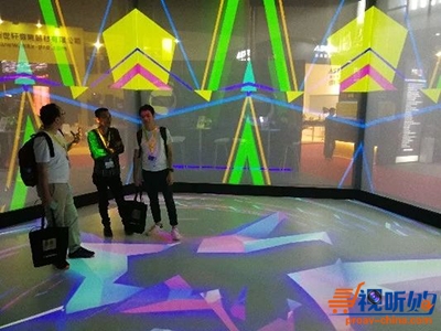 据了解,该展项由9台松下激光机投影打造,每一面纱幕宽4米,高3.5米,并由一台31,000流明的松下激光光源工程投影机PT-SRS30KC进行投射,地幕画面直径8米,由4台12,600流明的松下激光光源工程投影机PT-FRZ120C融合投射。