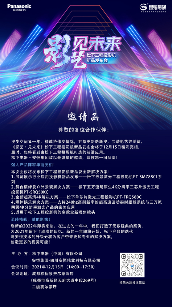 《影艺·见未来》松下工程投影机新品发布会将于2021年12月15日精彩亮相。