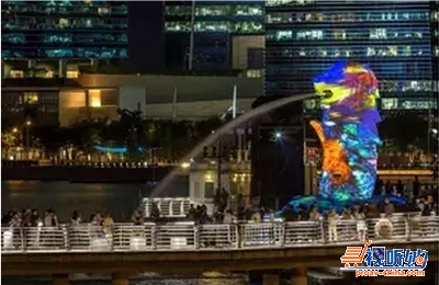 法国多学科艺术与设计团体---Danny Rose,是一个专门开发超大型视听演出和城市表面交互式3D墙体投影的团队。他们这次在新加坡著名鱼尾狮像上的投影项目给人们带来惊人的视觉效果。对于“海洋之体”这个创意作品,Danny Rose为口吐海水的鱼尾狮穿上海洋生物图案的绚丽外衣,格外引人注目。
