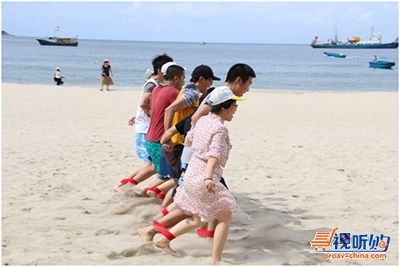 接下来举行的团队拓展活动让整个行程达到了最高潮!二人三足、沙滩接力、移花接木……让在场的每一个人细胞迅速活跃起来,团结一致,勇往直前!