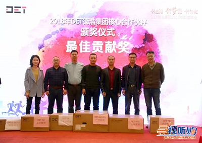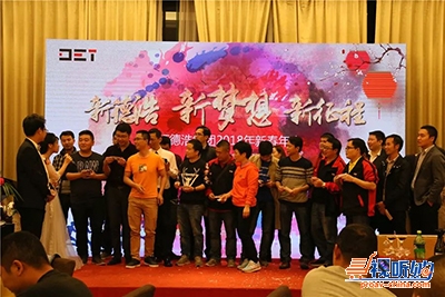 在过往的一年中,在各位合住伙伴的鼎力支持和帮助下,DET德浩走过了整合和改变的2017年。在新春晚宴现场,DET德浩举行了一场别开生面的颁奖仪式,对过去一年有突出贡献的代理商们,将他们主推的机器以奖品的形式再次反馈赠送,真是一份沉甸甸的祝福。期待2018我们共叙友谊,共话未来!也希望我们在新的一年里彼此携手更进一步!