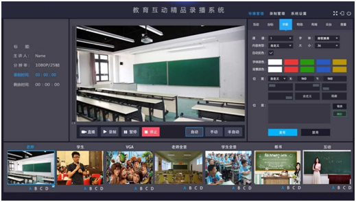 AS-A8P-22教育录播主机不仅具备强大的功能,还拥有简单易用的操作界面。内嵌双导播软件,实现了画面预览、录播、导播、特效切换等多种功能。同时,还支持跟踪设置、字幕添加、摄像机控制、外设中控、点播回放以及设备管理等操作,使录播过程更加丰富多样,同时也提供了便捷的操作方式。