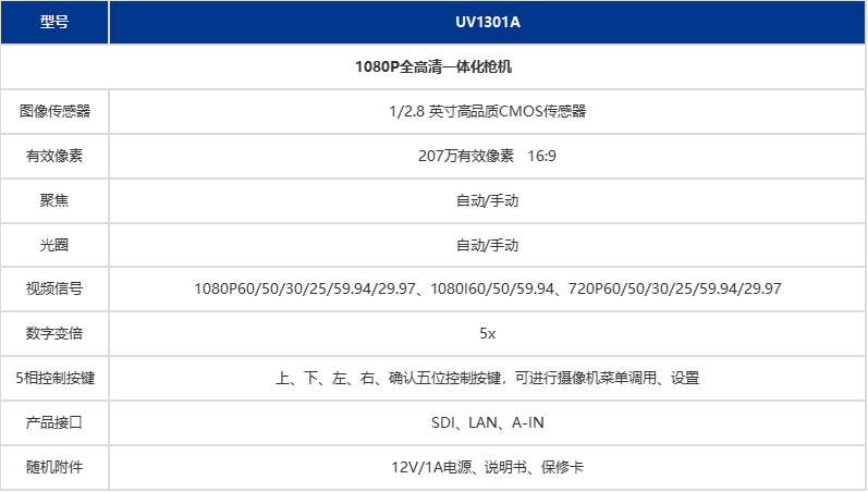 产品规格:高清枪型摄像机