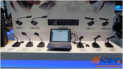 这次展会ATUC-50数字会议系统也推出新的桌面式会议话筒解决方案,它们是搭配ATUC-50IU嵌入式单元使用的AT881TL/RC超指向带LED灯远程控制的电容话筒,AT881TH/RC心型指向带LED灯远程控制的电筒话筒,以及AT882TL/SSRC双音头超指向带 LED 灯无噪单路/远程开关的电容话筒和AT882TH/SSRC双音头心型指向带 LED 灯无噪单路/远程开关的电容话筒。