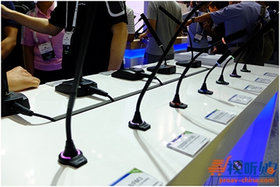除了以上新品外,这次展会还展示了针对目前会议市场话筒设备使用过程中的不足,精心研发的万能Engineered Sound工程模组系列话筒,该系列兼容可同时数字、模拟会议系统,同时可以实现卡农输入和螺旋输入。整个系列包含4种不同的指向性的话筒元件、6种不同长度的鹅颈管,以及4种不同的供电模组,用户可以实现各种方式话筒与音头互换组合;独特旋转方式组装的安装技术,有效解决了其他安装形式话筒长时间使用会松动的现象,使用起来更放心时间也更长久。