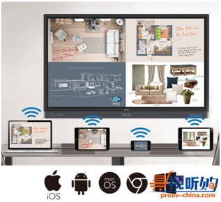 明基智能商务会议平板支持多平台、多设备同时接入,无论是手机、平板还是PC,都可以接入开会,而且适应Android、Windows、Mac等主流系统平台。让居家办公的人们既可以减少设备限制,同时还能获得更专业的远程会议体验。