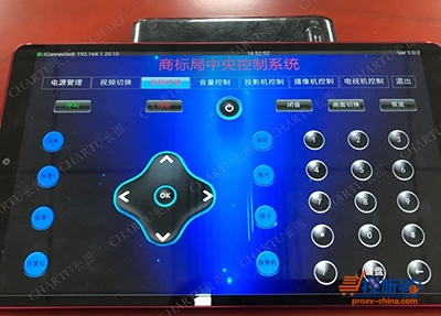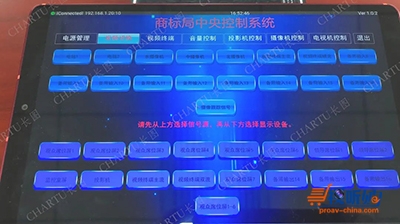 在多功能会议室建设中,长图选择增加一台视频终端,解决中国商标局远程视频会议的需求,无论在疫情期间保障安全还是在日常工作中提高工作效率都能高效满足;增加2台摄像机,并通过设定预位置来实现摄像追踪目的;增加了1台音频处理器,实现对音频的随意控制;增加6台液晶电视,满足台下观众席视频观看;增加一台长图品牌1616的视频矩阵,实现视频信息的随意切换;增加长图品牌的中控CT-3,通过串口控制、红外口控制、弱继电器控制实现对会议室所有设备的控制,并可通过平板电脑一键智能管控。