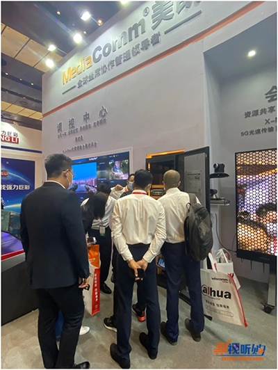 MediaComm美凯在北京InfoComm China 2020展出了新一代调控中心完整解决方案,展示基于光纤KVM技术的坐席协作管理平台在调控中心的实际应用,解决调控中心实时操作、高效操控、互联互通、稳定运行的使用需求。而全新加入的高速全功能USB、异地资源共享联动、新型运维监控平台的全新整合系统,赋能现代调控中心更加完整、实用、智慧的强大功能,改变传统调控中心面对新的任务环境与需求的不利局面,加速传统调控中心向现代调控中心的转型。MediaComm美凯展出的新一代调控中心完整解决方案引起了现场众多行业观众的关注,大量现场行业观众的“围观”令MediaComm美凯的展位成为展会当日的焦点之一。