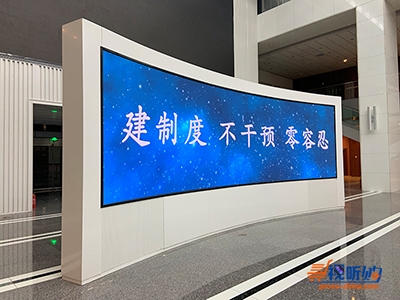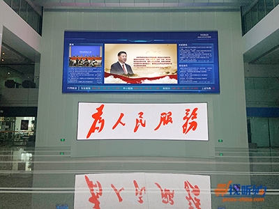 位于主屏下方的弧形LED屏风屏,可以实时显示“为人民服务”的宗旨,也可根据需求设置文字、图片、视频流媒体、天气等信息。并与主屏实时联动,展现同主题内容。