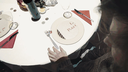 投影投射在空间的每一面墙壁和餐桌上,投影的物体大小和形状会受到餐盘的影响。当将碗碟放在桌子上时,碗碟所包含的风景画面就会散发到桌面和四周。