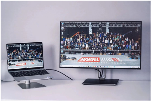 通过Type-C接口还能够让U27U2显示器轻松与笔记本电脑、智能手机、平板电脑等移动设备连接,实现一线投屏(移动设备需支持DP Alt协议),使画面实时共享。投屏状态下让手机等移动设备“化身”为”PC电脑”,搭配U27U2显示器轻松带来轻商务办公、网页浏览、多合一影音娱乐、游戏等多方面良好的应用体验,甚至实现视频/图片/文字等内容同步传输及自由演示,提高工作效率。