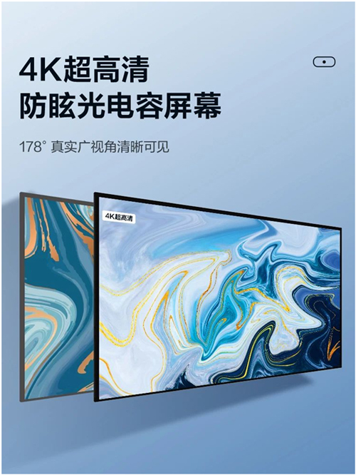 其配备了钢化玻璃材质的4K超高清大屏,能够呈现更为清晰、生动的画面细节,观看上拥有178°无死角的视觉效果,帮助参会者提升会议的整体观感体验。