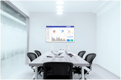 众多中大型企业往往具备中型会议室,会议空间开阔,也可容纳更多的人同时开会。尺寸选择上不能选屏幕太小的,98英寸的会议平板正可以匹配该会议空间。不仅如此,超跃版会议平板同样功能丰富全面,具备无线投屏、4K超清+双4K UI、罗盘快捷辅助、双模式智能书写等功能,有效实现高效办公。