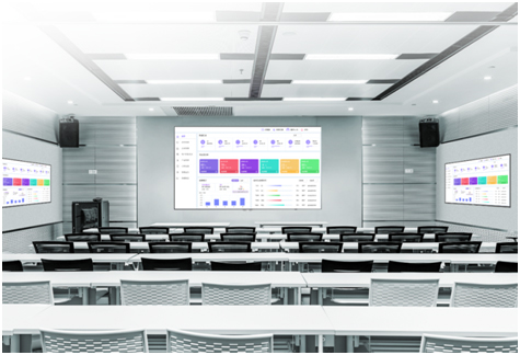 培训室在众多集团或个别行业较为常见,其主要用作岗前培训、员工内训、团队建设、全部门会议等场景。在常规尺寸的LCD智能会议平板无法满足场景需求的情况下,即可以采用尺寸更大,集小间距技术、安卓系统、视频会议、无线中央控制于一体AloT智能生态LED商显系统的LED智能会议屏。