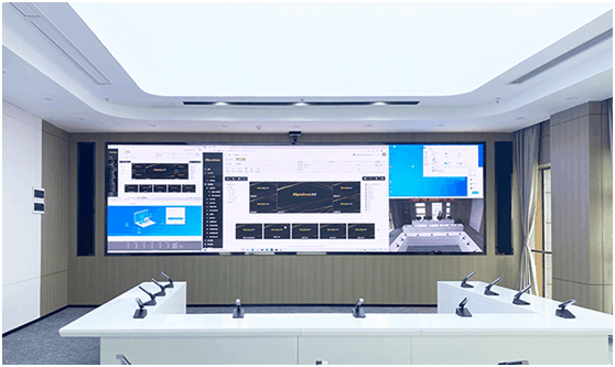 作为二公司的会议室、监控室,该房间不只肩负着随时掌握工地实时动态,还需要与工地、指挥室、办公室等进行远程会议、紧急会商。