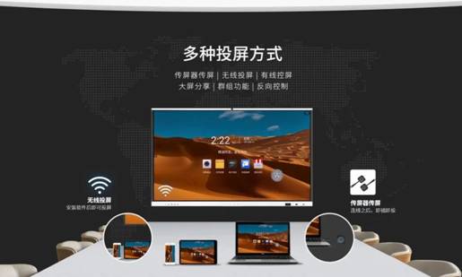 除借助无线投屏软件进行投屏分享外,还可以另外配备传屏器进行内容传屏。相较于无线投屏,传屏器功能更为丰富及强大,其支持智能遥控、无限批注、大小屏多点触控等,可以实现多种移动显示设备和大屏之间推送、传屏及控制的全功能多屏互动。此外,传屏器也无需借助投屏软件,在首次配对成功后即插即投,方便快捷。