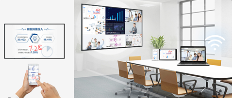 在集团报告会、演讲会等大型会议时,也可以通过投屏软件将画面直接分享到手机、笔记本电脑甚至是pad等个人终端,从而实现高效实时同步,这样即便是距离较远的与会人员,也可直接通过个人终端不遗漏任何会议信息。
