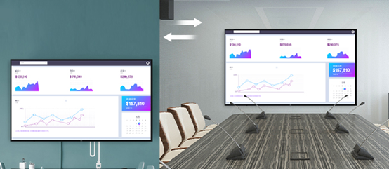 针对小型会议室应用以及需要借助PC终端来同步进行画面显示的情况下,其实也可采用有线控屏的方式。AOC智能会议平板具备HDMI OUT以及USB-Type B接口,在采用数据线的情况下也可实现会议平板和PC等设备大小屏同帧同步显示,以及会议平板反向控制信号源终端。