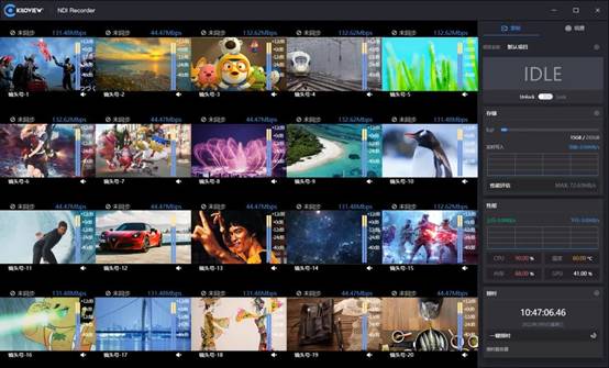 千视NDI录制系统支持对视频画面的预览,您可以很方便的查看录制画面、音柱、码率及同步状态等信息,同时还可对存储状态、CPU、内存占用率、温度及网络带宽占用情况等主机性能进行监测。