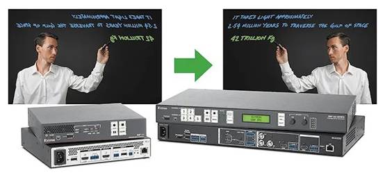 DTP CrossPoint 4K 系列矩阵切换器集 AV 信号切换、图像解析度转换、分配放大、音频处理和功率放大及控制等功能于一体。教师可为本地及远端的学生提供丰富多彩的内容演示。高品质的图像和优质的音效可大大优化同学们的学习体验。
