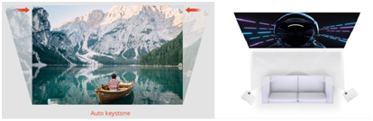 PX710-4KS Pro和PX710-4KS均内置自动垂直梯形技术,无需任何手动调整开机,就能拥有想要的方正画面,同时备有水平梯形调节功能,支持侧投、四角调整功能,让家居摆放更加灵活;值得一提的是两款产品均能实现曲面调整,让投影机完成曲面、球形、圆柱形等异形屏幕的创意演绎,满足多种不同的商用还是家用投影场景;支持OTA远程升级,用户只需通过机器连接Wi-Fi,即可进行远程软件更新,产品升级维护无忧;设置了两路HDMI 2.0 输入接口,并配有有U盘直读功能以及USB供电,支持USB 5 V 1.5A 电源供应接口,方便接驳更多小功率设备,日常使用或者是商务展示都更加便捷。